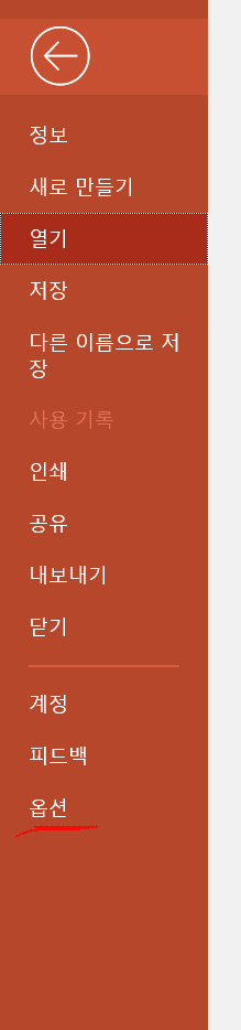 - PPT에서 ‘파일’ > ‘옵션’ 클릭